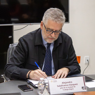 Durante el acto, el titular de la Unidad de Trabajo Digno, Alejandro Salafranca Vázquez, en representación de la STPS Federal, formalizó este acuerdo que busca proteger los derechos de las y los trabajadores y fomentar la formalidad del empleo en la entidad.